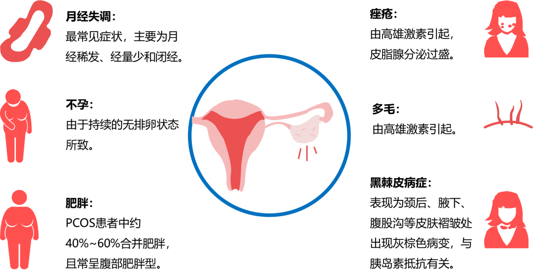 多囊的全名是多囊卵巢综合征(PCOS)顾名思义是卵巢里有很多囊,它是妇科最常见的内分泌疾病之一。常伴有月经稀发、痤疮、多毛、肥胖、不孕、高血糖、高血脂、异常子宫出血等一系列表现。